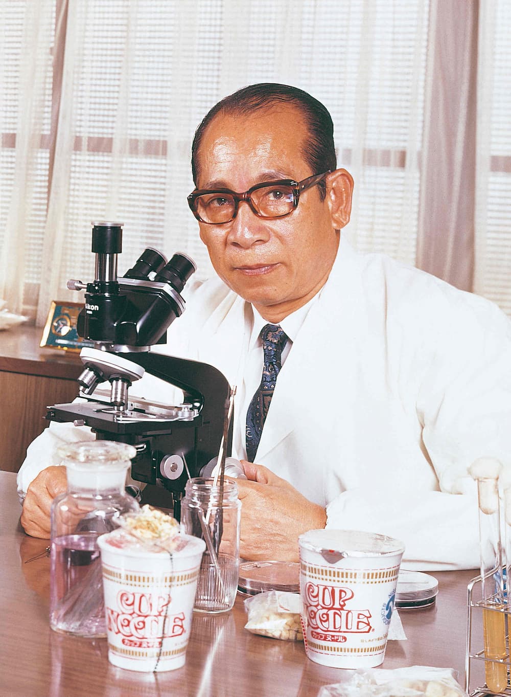 明治43年台湾生まれ。大正13年高等小学校を卒業後、祖父の経営する織物業を手伝う。昭和9年立命館大学専門学部経済科修了。23年中交総社(現・日清食品)創業。33年世界初の即席麺「チキンラーメン」を発明、日清食品に商号変更。46年世界初のカップ麺「カップヌードル」を発明。平成14年勲二等旭日重光章受章。19年96歳で逝去。著書に『魔法のラーメン発明物語 私の履歴書』(日本経済新聞社)『食欲礼賛』(PHP研究所)など。