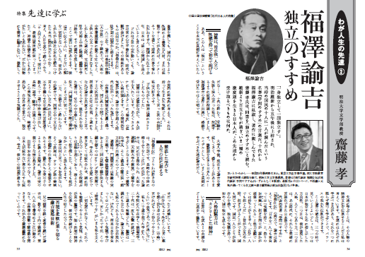 こと諭吉の場合は、三つの柱で見ていくとよいでしょう。一つは日本が独立するために指し示した方向性。二つ目は、……(続きは本誌にて)