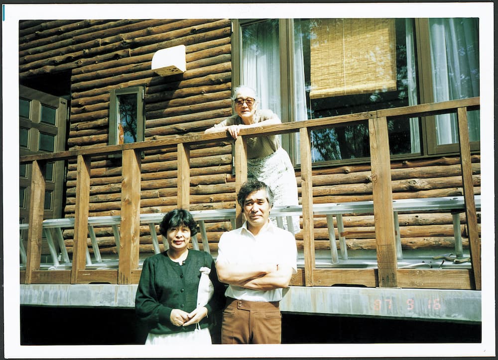 【写真=創業者で兄の昌之さん(前列右)と小柳会長(前列左)、両名の母】