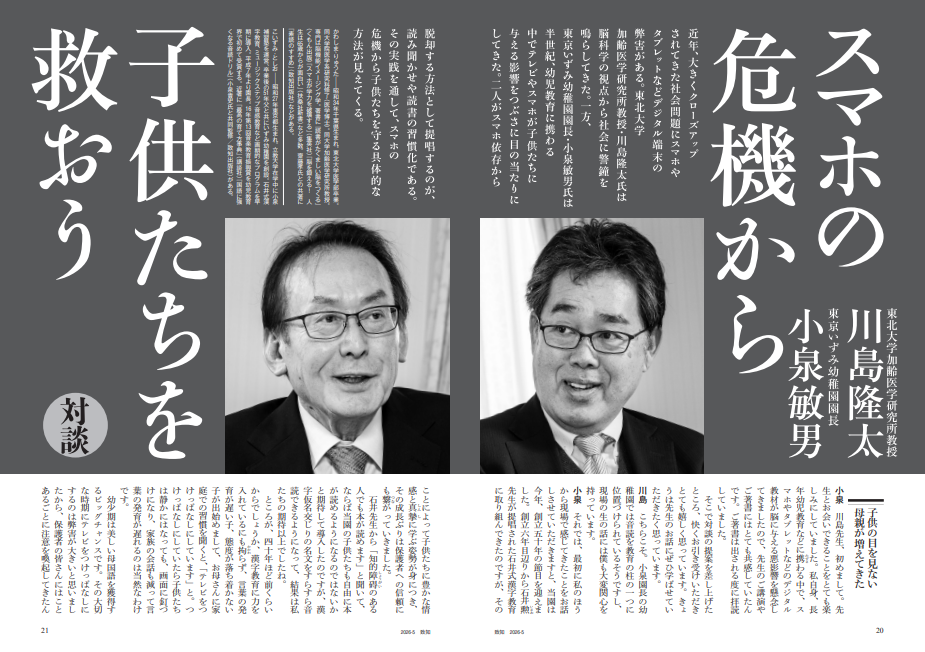スマホの危機から子供たちを救おう 川島隆太(東北大学加齢医学研究所教授) 小泉敏男(東京いずみ幼稚園園長)