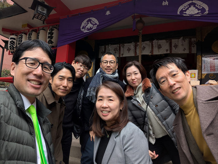 【写真=共に苦難を乗り越えてきた㈱ユーグレナの経営陣。左が創業者の出雲充氏、前列中央が植村氏】