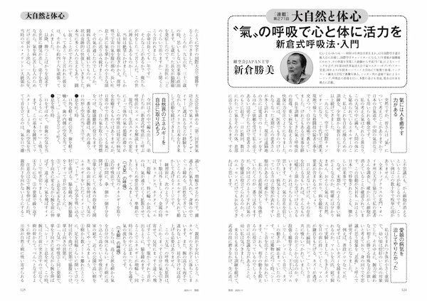 多くの方が悩まれているであろう健康の問題に対し、「体と心は繋がっている」という観点から、読者の皆様に役立つ健康情報をお届けしている連載「大自然と体心」。今月ご登場いただいたのは、綾空会JAPAN主宰の新倉勝美さんです。