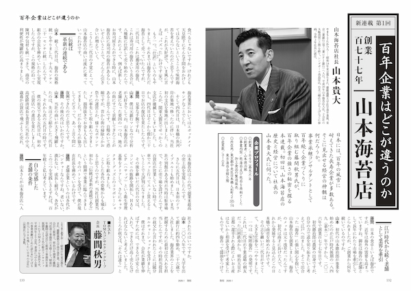日本には、100年の風雪に耐えてきた長寿企業が多数ある。そこに見出せる経営の神髄は何だろうか。事業承継コンサルタントとして百年続く企業づくりに取り組む藤間秋男氏が、百年企業の強さの秘密を探る本連載。初回は、山本海苔店の歴史と経営について社長の山本貴大氏に伺った。