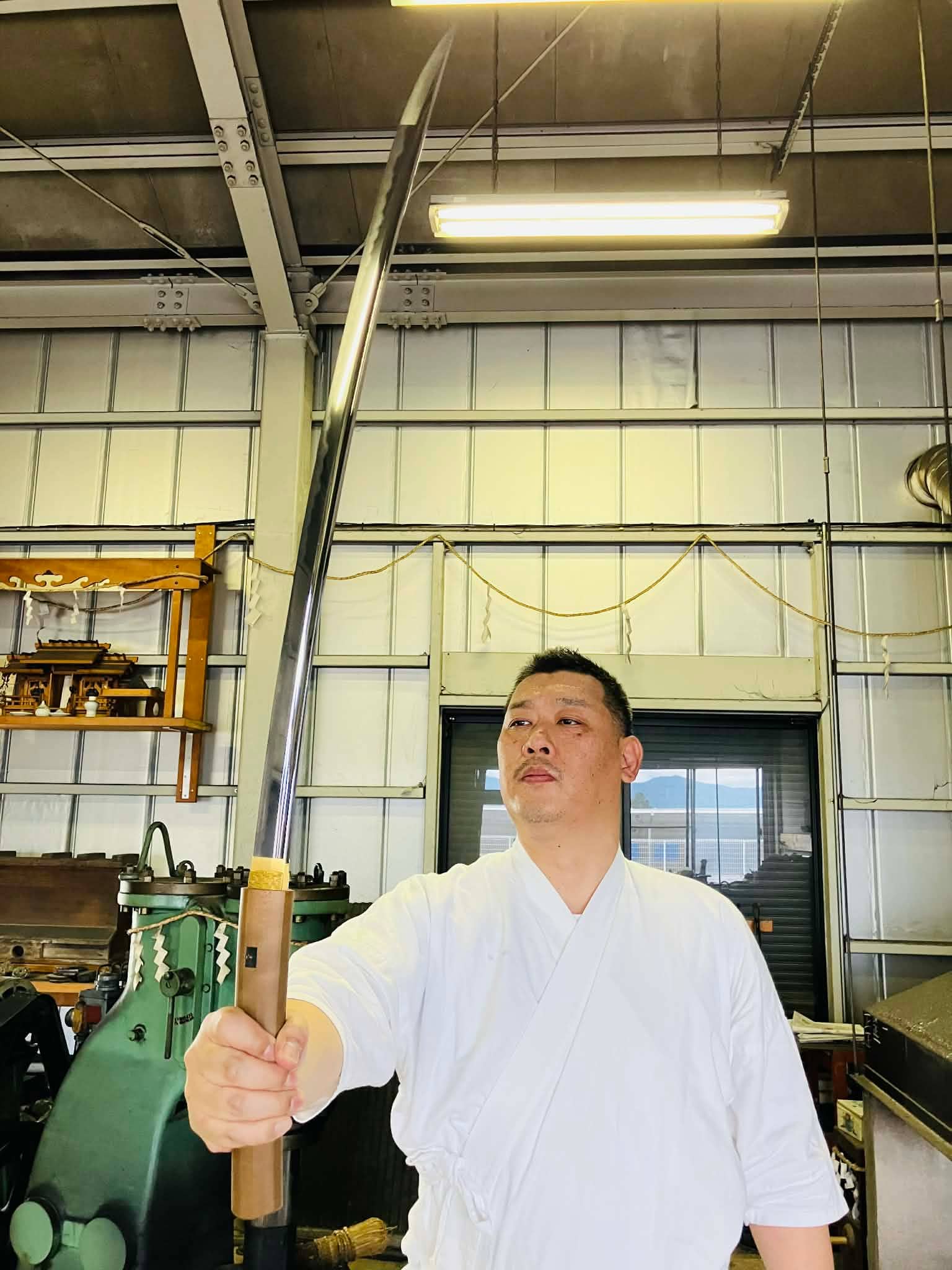 取材は、埼玉県神川町にある下島さんの鍛錬場にて行われました。実際に下島さんが制作した日本刀を見せていただいたのですが、その迫力に圧倒されると共に、銀色に輝く刀身、波紋の美しさに感動しました。下島さんの真心、祈りが伝わってくるようで、刀鍛冶という仕事の素晴らしさ、尊さを教えられる取材となりました。