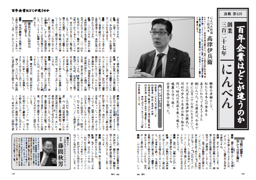 4 月号ピックアップ記事 /百年企業はどこが違うのか