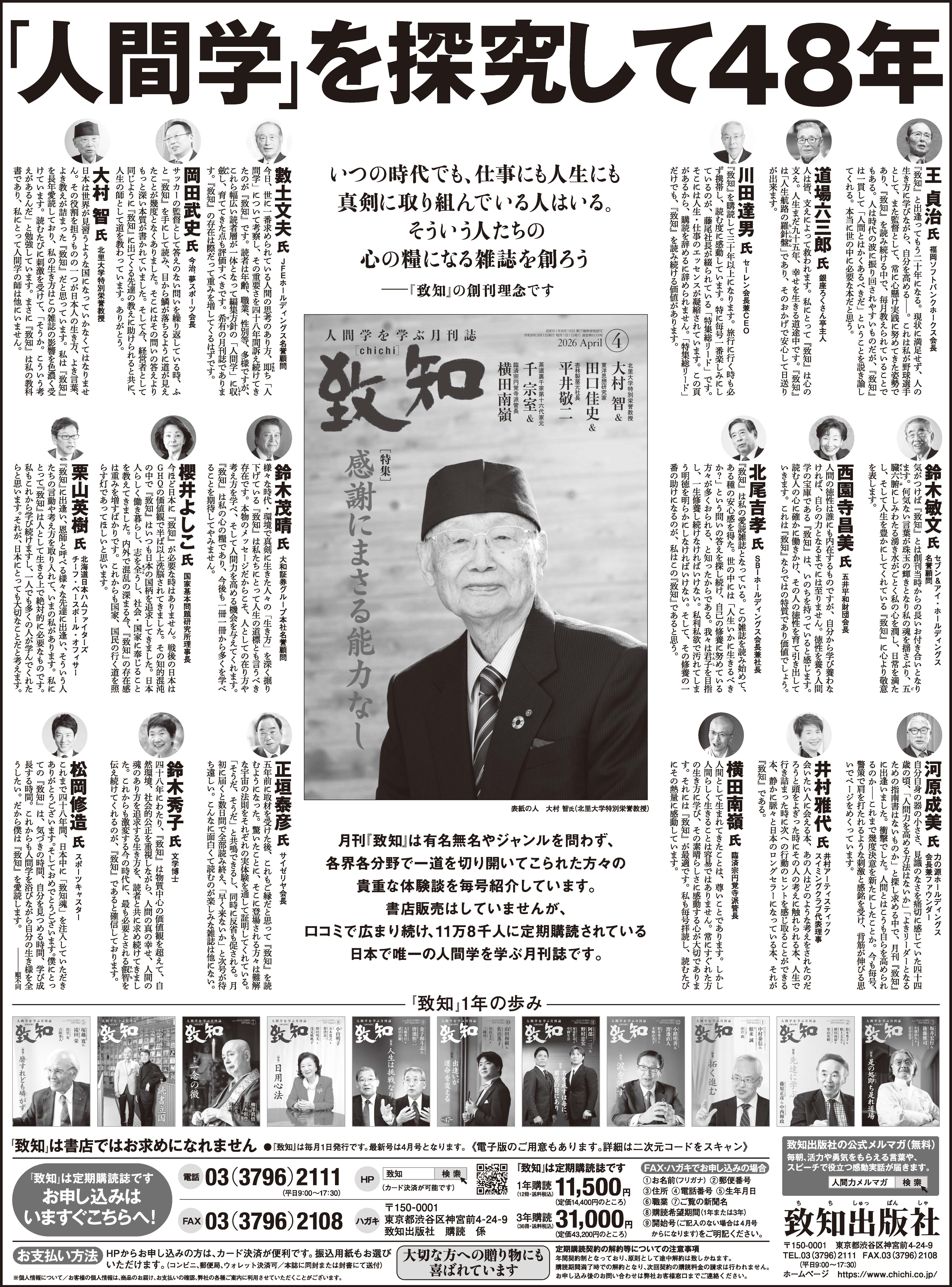 紙面では、『致知』をご支持いただいている方々からのコメントの全文を紹介するとともに、この1年間の表紙をズラリとご紹介!