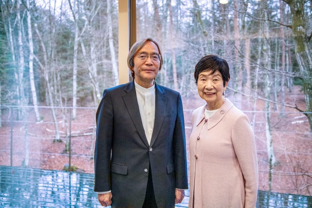 この日はあいにくの雪交じりの雨模様。田坂先生は尊敬する鈴木先生に、テラスから眺望できる美しい富士山をご覧いただきたかったご様子でしたが、鈴木先生はそういう田坂先生に「こういうしっとりした景色もまた、素晴らしいじゃないですか」と笑顔で答えられていました。