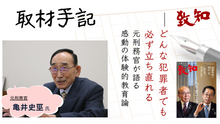 「生きた鬼」と呼ばれたSさんですが、亀井氏との出逢いはSさんに劇的な変化をもたらします。亀井氏はSさんをどのように教え導いたのか、そしてSさんはどのような変化を遂げたのか。時に厳しく、時に慈父のように接しながらSさんを更生へと導いた感動の軌跡、そしてSさんが処刑前にしたためた遺書の内容は、ぜひ誌面や致知電子版でお読みください。その実話はまさに人を育てる要諦とも言えるものです。